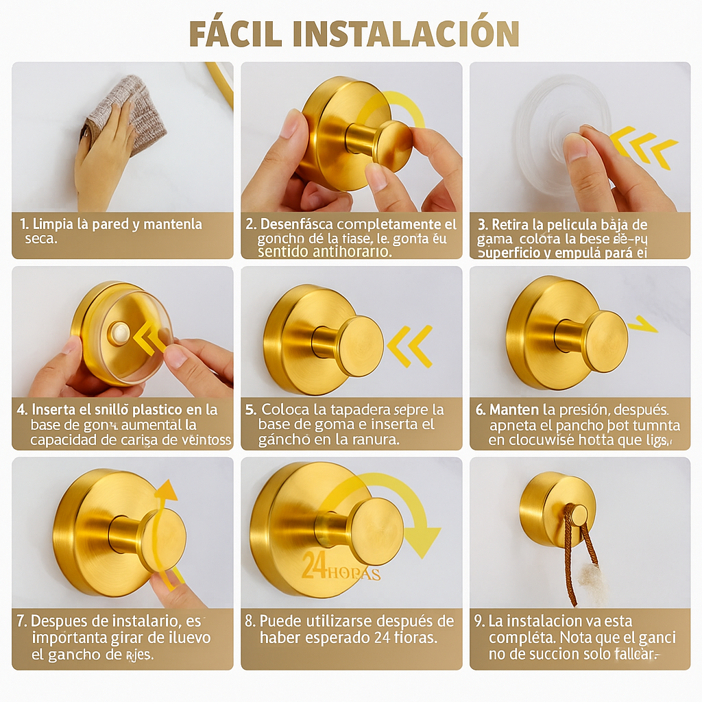 ¡Se acabaron los agujeros en las paredes! Simplemente elige una superficie lisa, gira y cierra, ¡y listo!