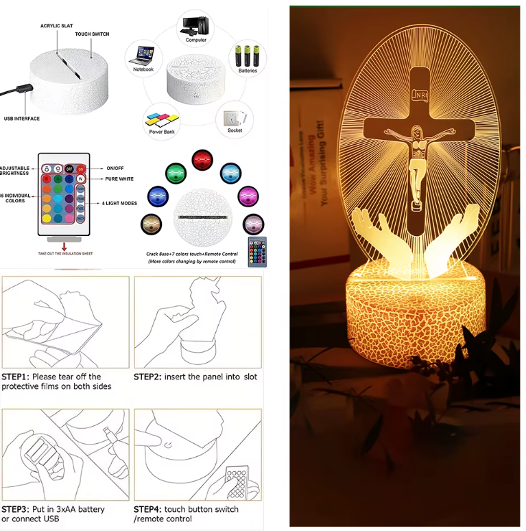 ✝️Multicolor y ajustable: cambia el color y la intensidad según tu estado de ánimo o momento de oración.