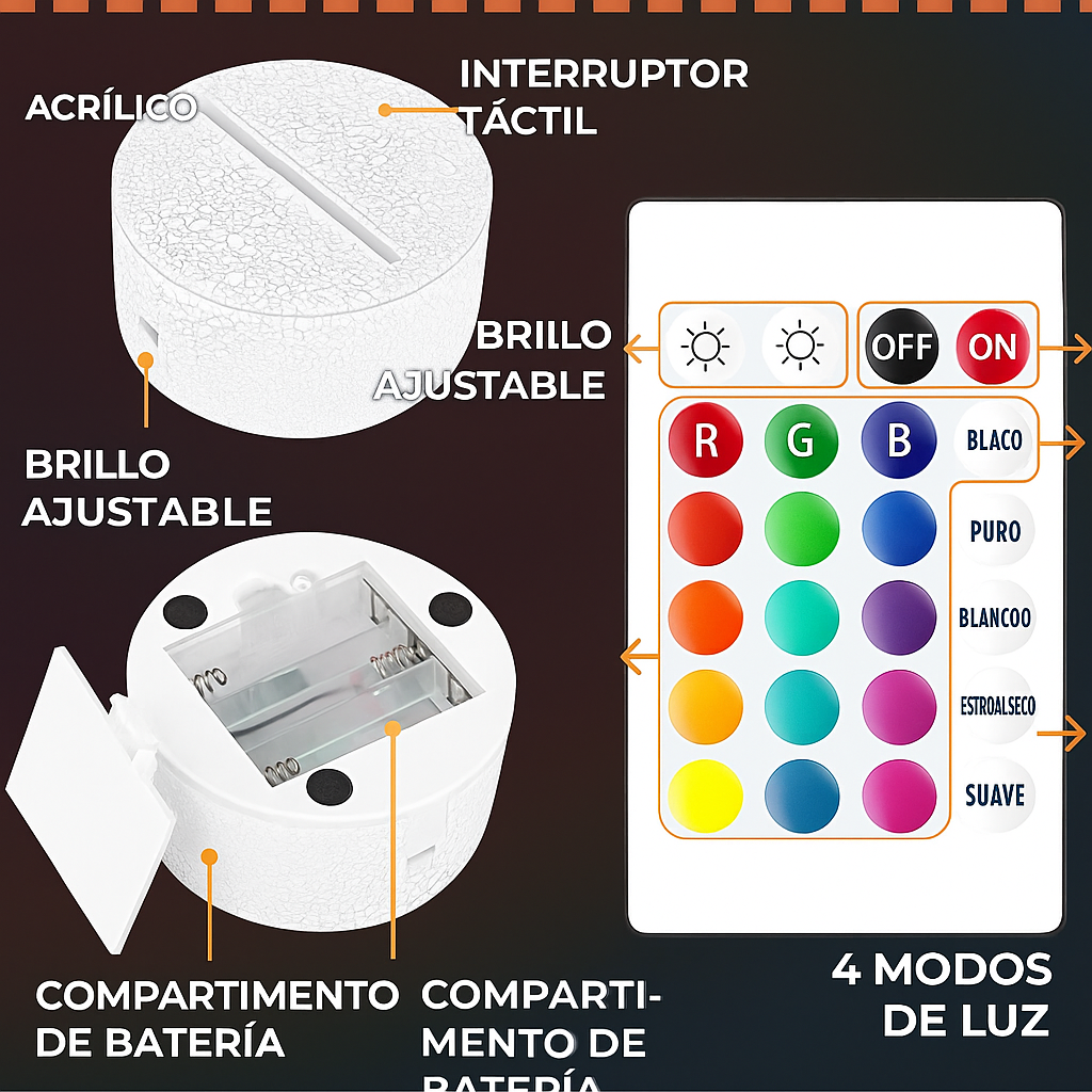 ✅Control remoto con 16 tonos de luz