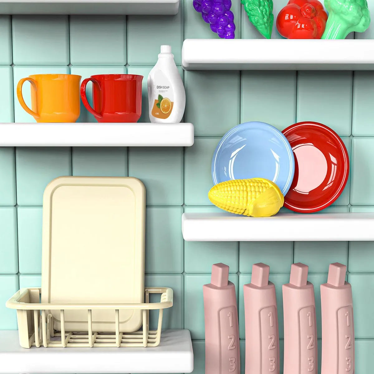 Listo para usar nada más sacarlo de la caja, este fregadero viene con 19 accesorios adicionales como platos, utensilios y alimentos.