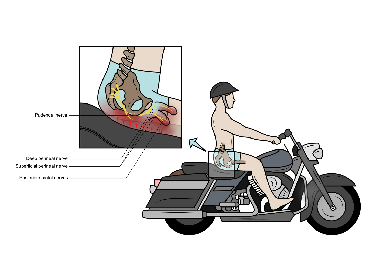 Según un estudio publicado por la Biblioteca Nacional de Medicina (sitio web del Gobierno de EE. UU.) en marzo de 2023, existe una relación entre conducir motocicletas y la disfunción eréctil. El estudio, centrado en personas que conducen motocicletas por profesión, reveló que cuanto más tiempo pasa una persona conduciendo, menor es su puntuación en el IIEF-5, lo que indica un mayor riesgo de disfunción eréctil (DE). Este mayor riesgo probablemente se deba a la presión prolongada sobre el nervio pudendo debido al uso prolongado de la motocicleta.