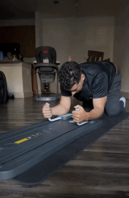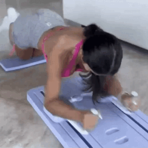 2. Empuje el Reformer ( tabla ) hacia adelante utilizando la fuerza de los músculos de sus brazos y apriete los músculos abdominales mientras empuja hacia atrás.